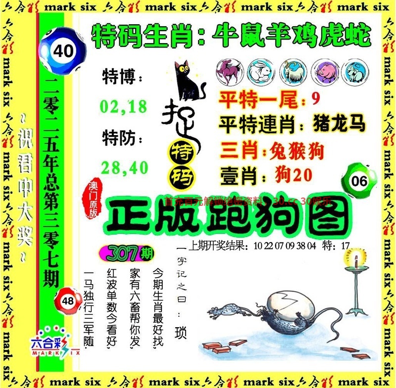| 307期 | 鼠 | 绿双 | 2尾 | 开狗20 |